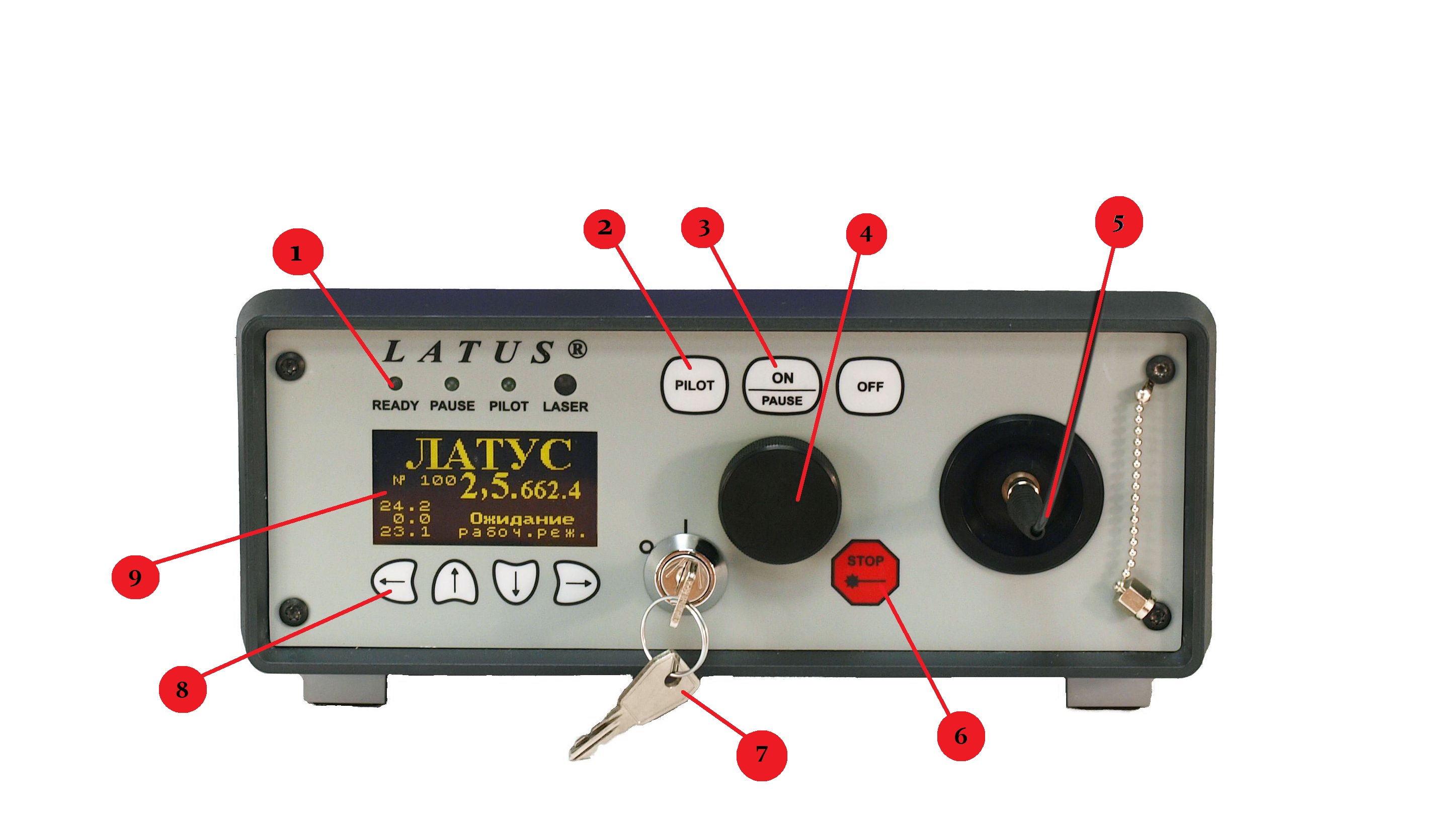 - Ключ блокировки лазерного излучения.